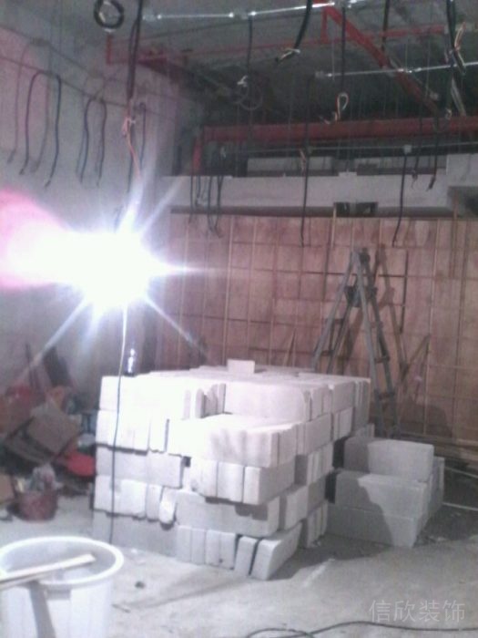 7月8日,開始砌墻了,砌墻先拉線,做到橫平豎直。廚房隔墻使用輕質磚砌墻,一般廚房衛生間都會用這種輕質磚砌墻,這種隔墻相對比較輕,且牢固防水,磚比較大,省工,8塊磚砌一平方米。