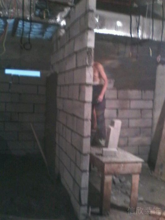 7月9日,廚房墻差不多砌好了,昨天只是砌了磚,今天已經粉刷好了。裝修公司粉刷墻面先要往磚墻上淋水,待磚濕透后,在風干。墻體必須保持均勻的含水量,然后批上水泥砂漿,并與鋁合金直尺刮平,再用搓板反復的磨水泥面,使水泥與墻體緊密結合。