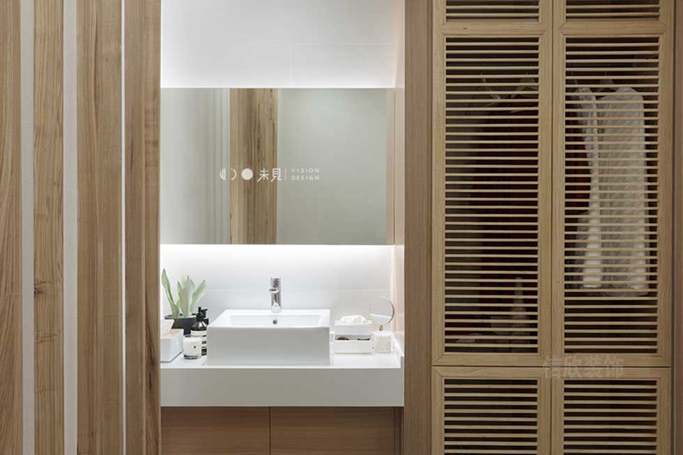 隱藏式的洗手臺設(shè)計和百葉門衣柜一體式的設(shè)計,功能性強,且美觀大方,把原木色北歐式手工藝的美感發(fā)揮的淋漓盡致,賦予了自然的生命力。