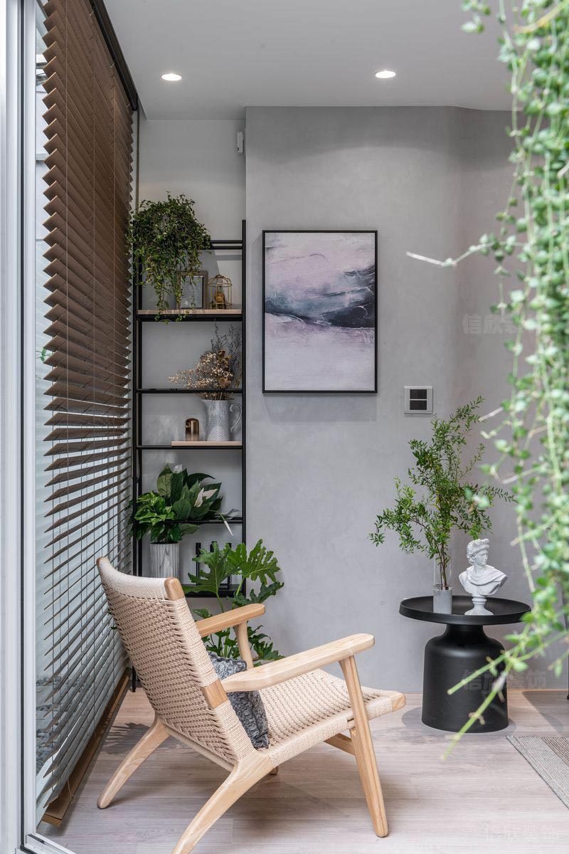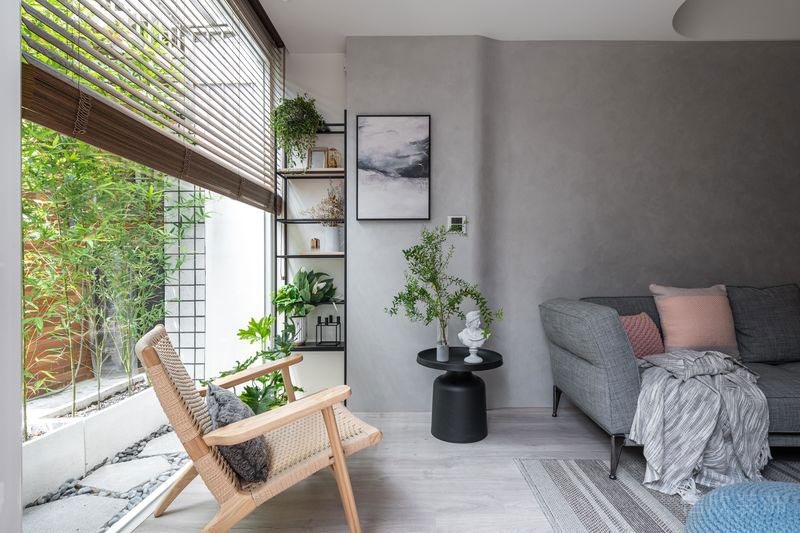 工業風置物架的干練和簡約,搭配灰色墻面的干凈,清爽,綠色植物的勃勃生機,一派生機盎然的景象。