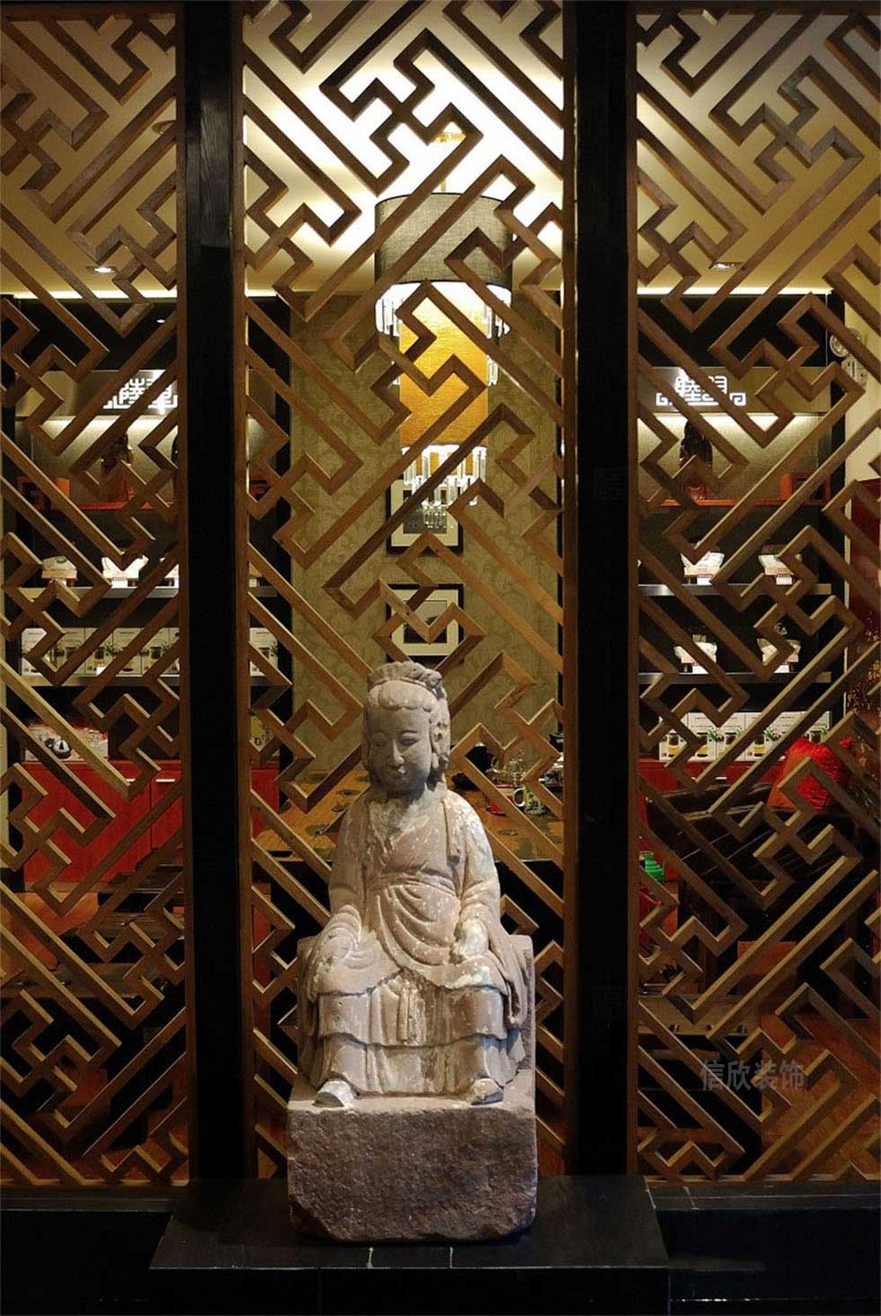 景觀魚池的設(shè)計(jì),青灰色磚和中式傳統(tǒng)文化佛像的搭配古樸的情懷中充滿禪趣的韻味,既有中國古典哲學(xué)的意境之美,又可以讓客戶體驗(yàn)到魚戲蓮葉間的雅趣。
