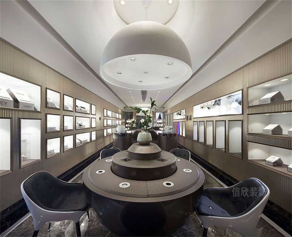 燈光的設計的展廳,通過空間的對稱性,整體區域統一的設計方式,給人的感覺整體更開闊,而沒有局促感,通過光影的照射效果,營造出如珠寶店般的完美效果。