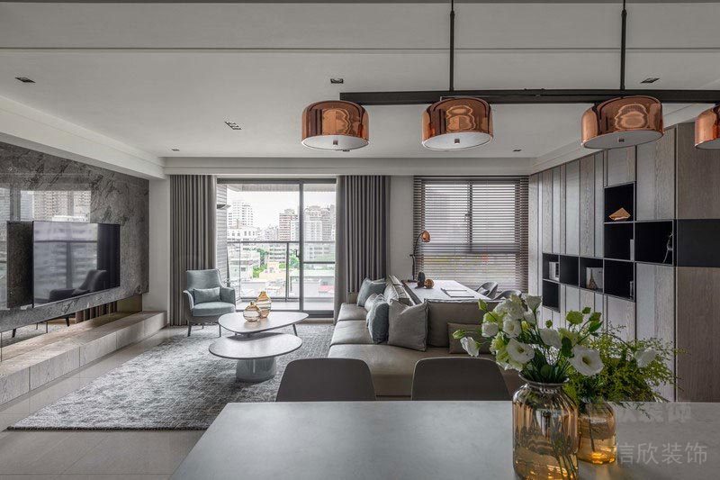 開闊通透的客廳,光感充足,飽和度高,配上現(xiàn)代的時尚的桌椅;讓忙碌于城市間喧囂的你,盡享精神上的追求與寧靜。