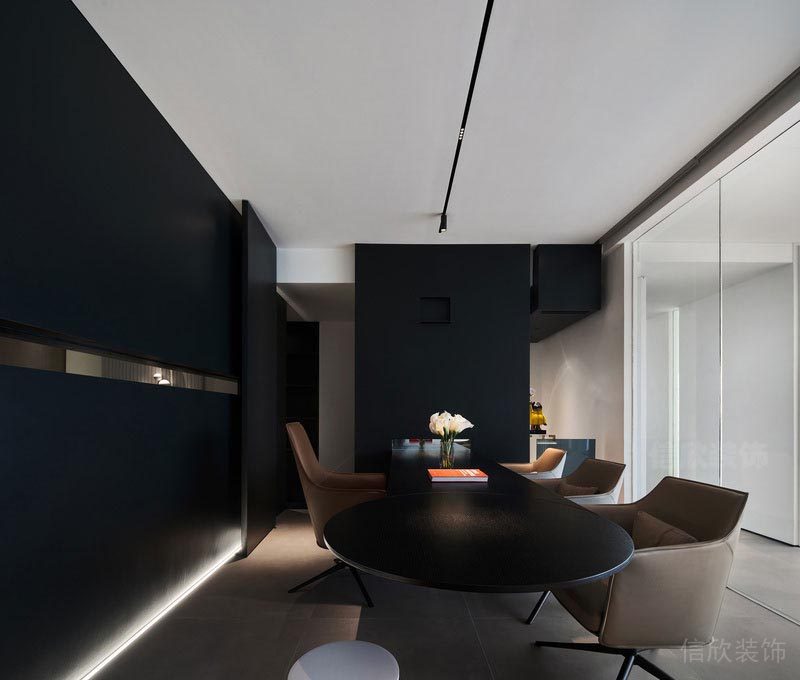 方案匯報室打通各個空間,自由流動,打破拘謹和封閉,軟裝陳設細節提升空間的品味和豐富性。玻璃通透的視覺特質,有別于厚重門墻的約束感,空間內空氣流動輕盈而靈動,人視線所及處朗闊、明凈,營造舒適、高效的商務洽談氛圍。必要時可啟動智能軟性窗簾升降完成暫時的私密洽談。