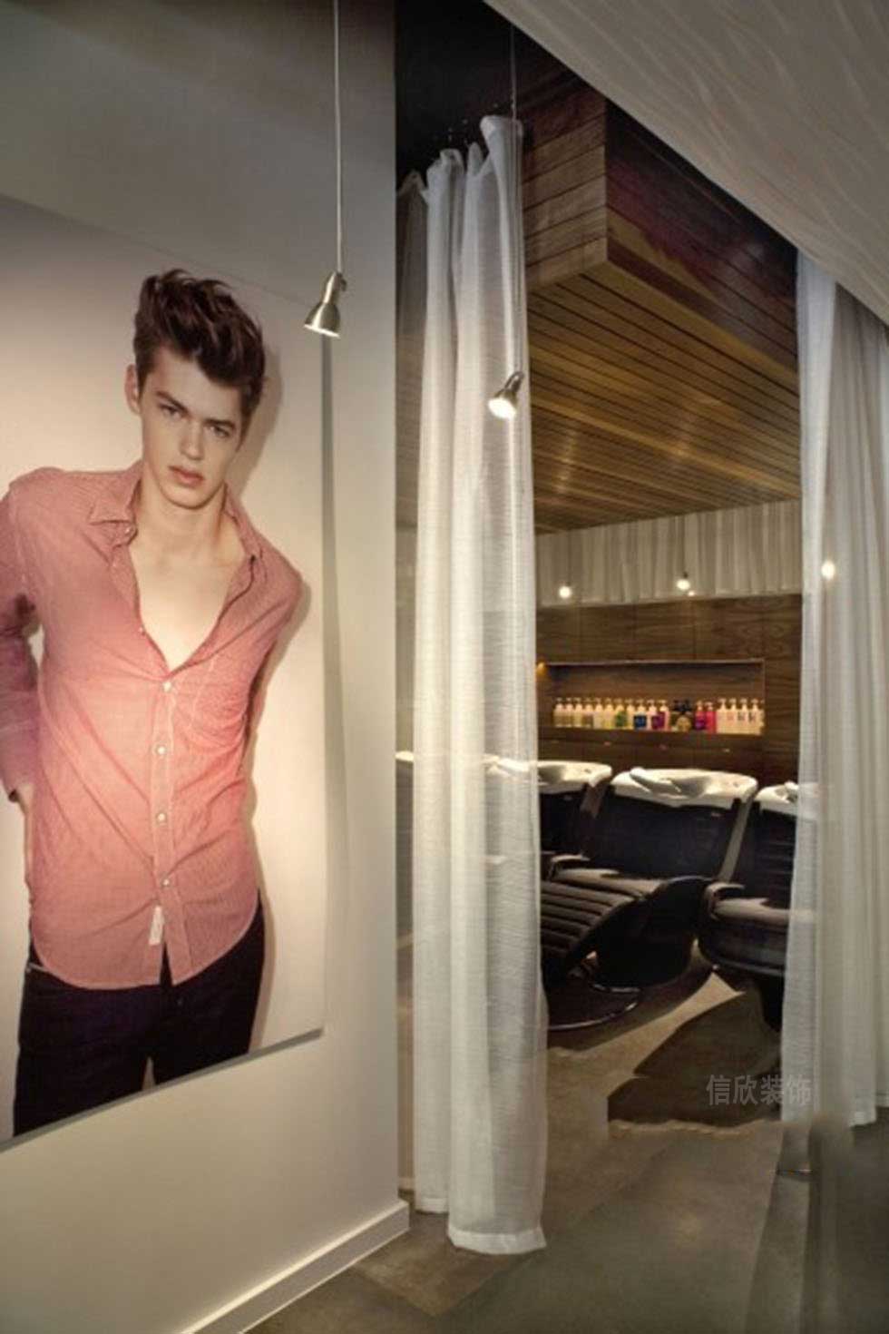 洗發區的單獨設計,既滿足隱私性的要求,又能和大廳里發型師的工作區域做一個分隔,同時墻頂一體的原木風設計,用復古和現代相結合的特點,制造出一個輕松,愉悅的小空間。
