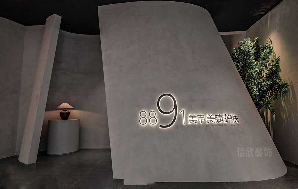 The front hall is the transition area from the shopping mall to the nail salon. The curved shape is more diversified than the straight line. The different degrees and directions of bending can increase the sense of art and interest of the space.