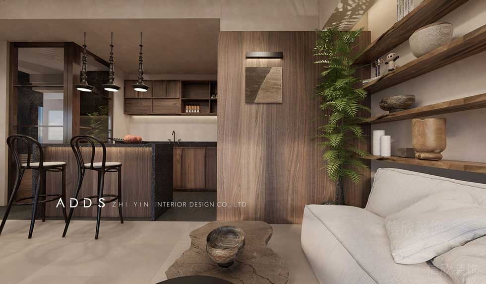 平面布置圖的裝飾設計,以原木和自然寫實的手法,模糊的功能區概念,用陳舊的手法譜寫現代的時尚感,給人一種漫時光的生活方式。