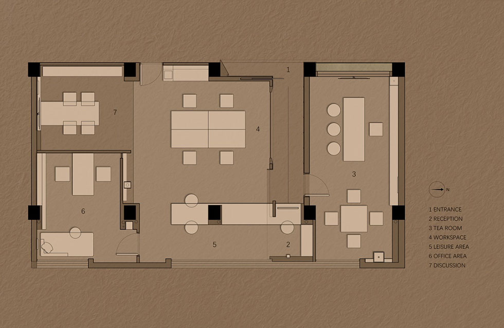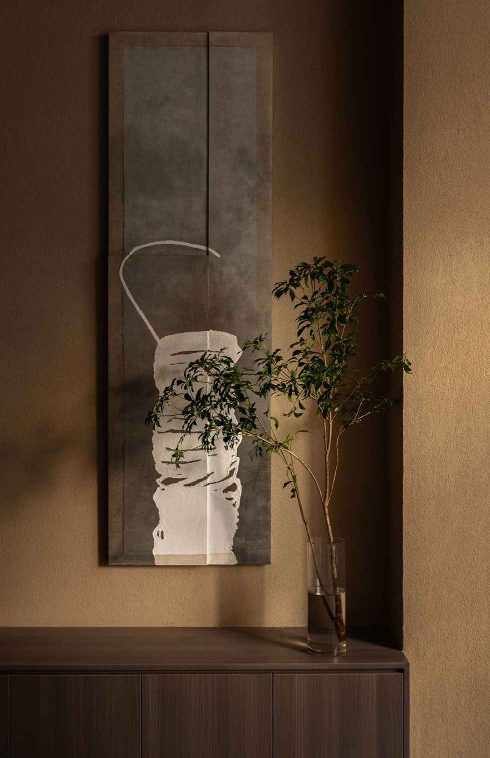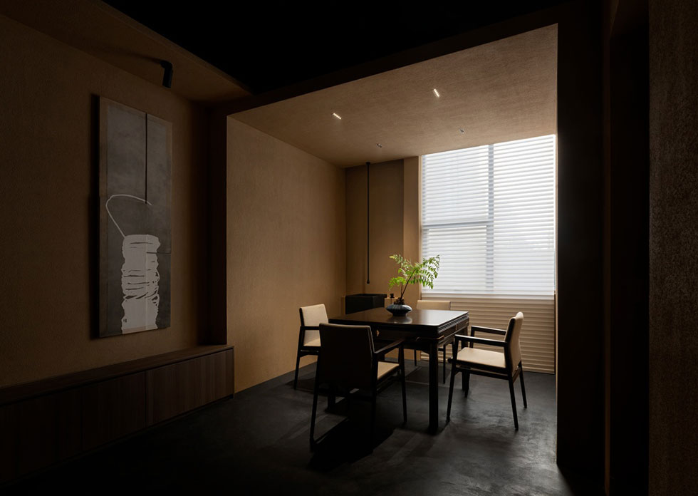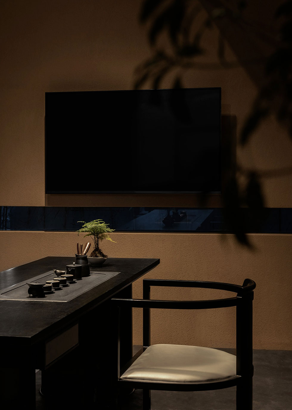 自然肌理的茶湯色溶于大面墻體,通過重點照明與黑色域的交融,營造靜謐釋壓的空間,微妙的質感,可以自在的交心暢聊。