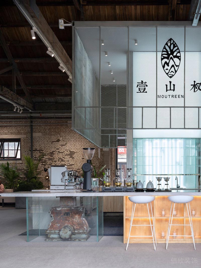 壹山樹咖啡新的室內(nèi)功能空間與南棧房內(nèi)部木梁桁架構(gòu)筑起的工業(yè)文明進(jìn)行著對(duì)話。新的功能以空間模組的方式介入歷史記憶中,各自的敘事構(gòu)成一種獨(dú)特的場域空間體驗(yàn)。不同的功能,如咖啡、劇場、書吧與學(xué)習(xí)角等空間,以一種空間蒙太奇剪輯的方式相互對(duì)話,同時(shí)與南棧房歷史空間共生。從歷史到此在,在俯仰之間建立,這就是壹山樹咖啡希望帶給每一個(gè)顧客的具身體驗(yàn)。