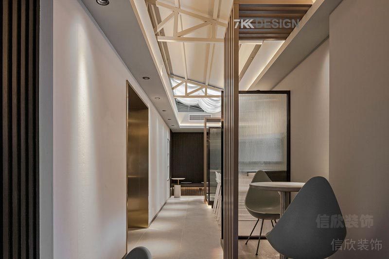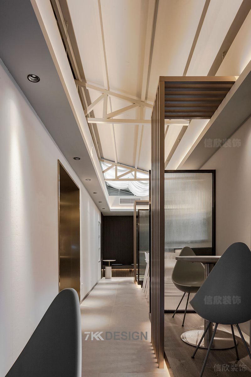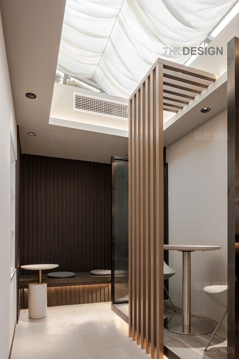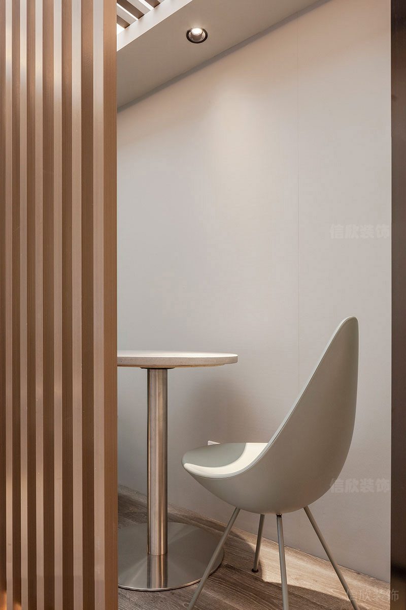 以不同隔斷劃分區域間隔,軟裝搭配的桌椅擺放也別有心思。
