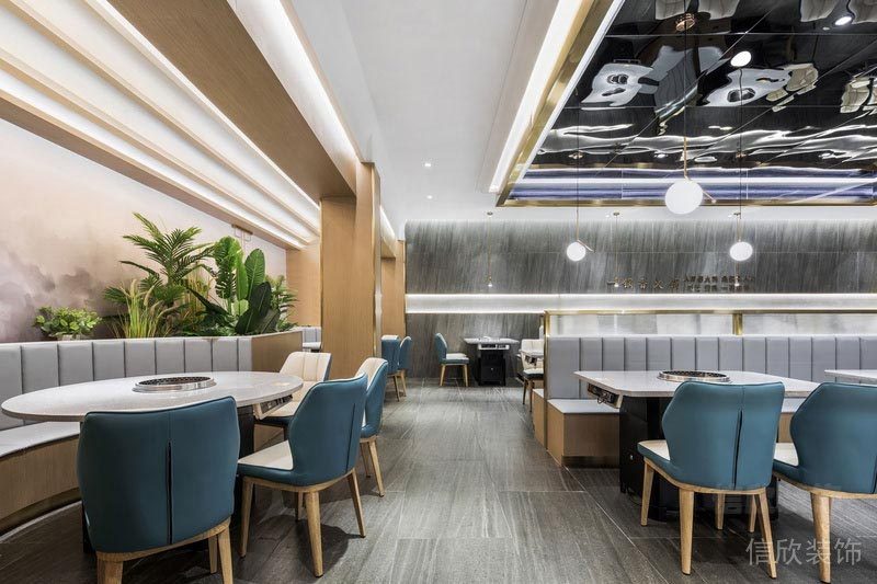 本案位于深圳市羅湖區(qū)是一所現(xiàn)代輕奢風的火鍋店裝修設(shè)計案例,輕奢風格的工裝簡約又不失大氣,不用很多色調(diào)的碰撞就能有不一樣的裝飾格調(diào)。受到很多年輕老板的喜愛。