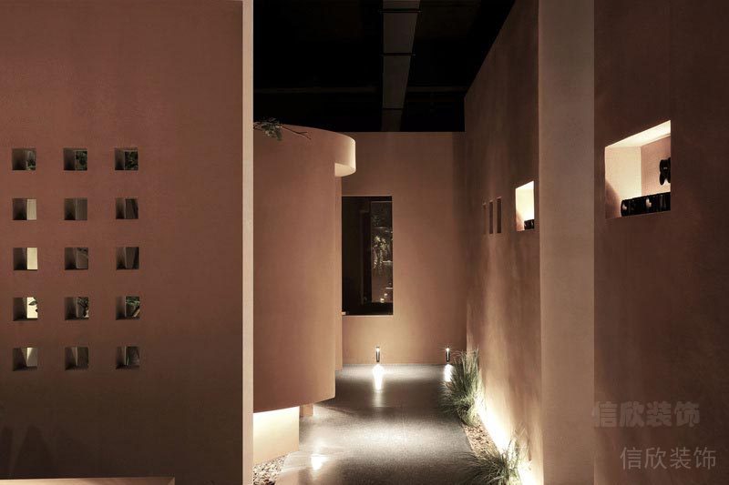通透的式的設(shè)計(jì),方便人員出入,大方無遮擋,簡單無頂?shù)募t色質(zhì)感漆處理,既復(fù)古,又透著簡單,自由,讓人心情放松的感覺。