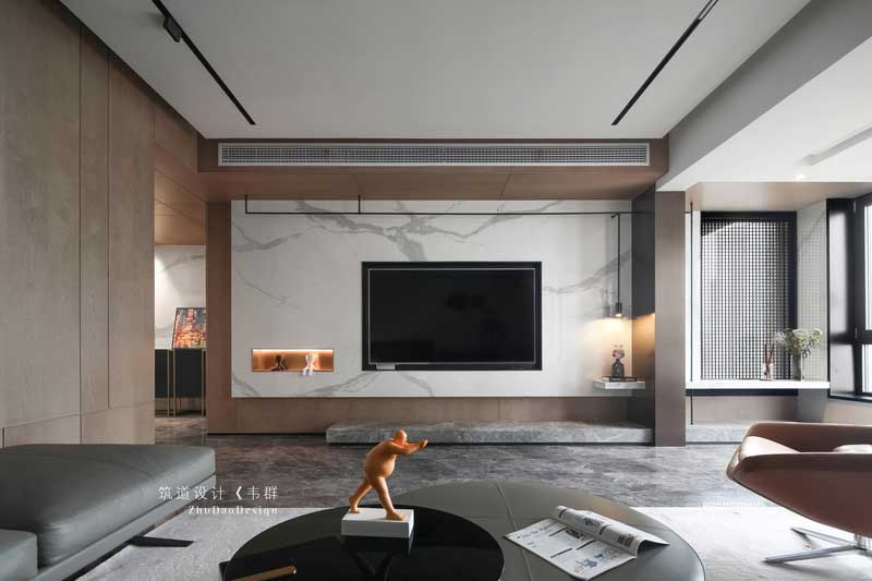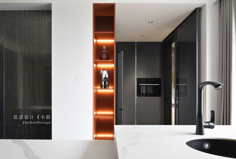 原本木飾面這塊是承重柱,為了弱化它的存在感,設計師通過穿插的手法,將線條穿插過來,空間有了靈動性,不會顯得呆板。原本木飾面這塊是承重柱,為了弱化它的存在感,設計師通過穿插的手法,將線條穿插過來,空間有了靈動性,不會顯得呆板。
