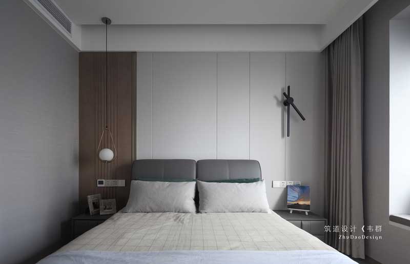 長輩房床頭背景墻以線條間隔抒發空間情緒,適親膚的床品、簡單大方的裝飾,讓人在簡凈素雅中安享生活之美。長輩房床頭背景墻以線條間隔抒發空間情緒,適親膚的床品、簡單大方的裝飾,讓人在簡凈素雅中安享生活之美。