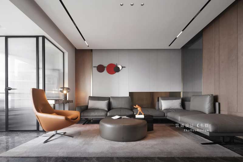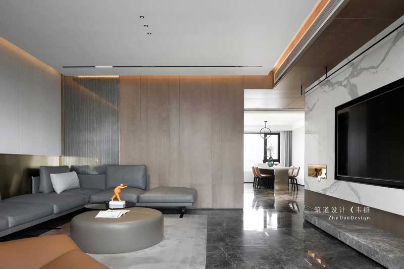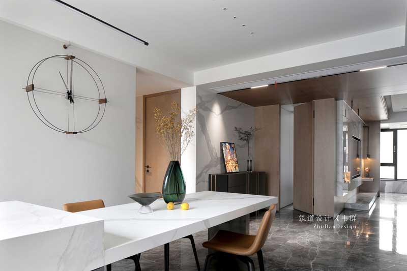 設計師巧妙地運用色彩和燈光,把看似獨立的空間完全打開并融于整體。木色的護墻、簡潔的裝飾、大理石電視背景以及擺放家具中夾雜的跳色的點綴,將原本素雅大氣的空間變得有了些許生活氣息。設計師巧妙地運用色彩和燈光,把看似獨立的空間完全打開并融于整體。木色的護墻、簡潔的裝飾、大理石電視背景以及擺放家具中夾雜的跳色的點綴,將原本素雅大氣的空間變得有了些許生活氣息。