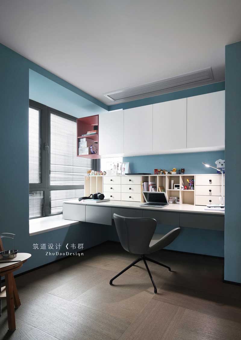 半開放式的布局讓空間兼具隱蔽性與流動性,室內的視野和光線俱佳,空間采用了大面積的藍色,營造出一個可以精心淺讀的空間,可以讓身處其中的人感覺心情放松,精神愉悅。半開放式的布局讓空間兼具隱蔽性與流動性,室內的視野和光線俱佳,空間采用了大面積的藍色,營造出一個可以精心淺讀的空間,可以讓身處其中的人感覺心情放松,精神愉悅。
