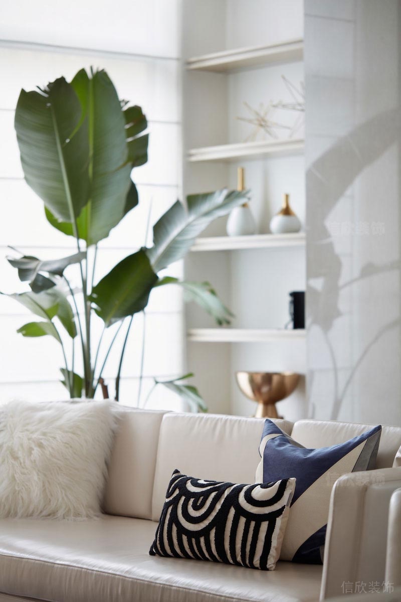 白色為主色調(diào)的客廳,搭配皮藝白色沙發(fā),明亮寬敞,觀感十足,簡約的唯美。