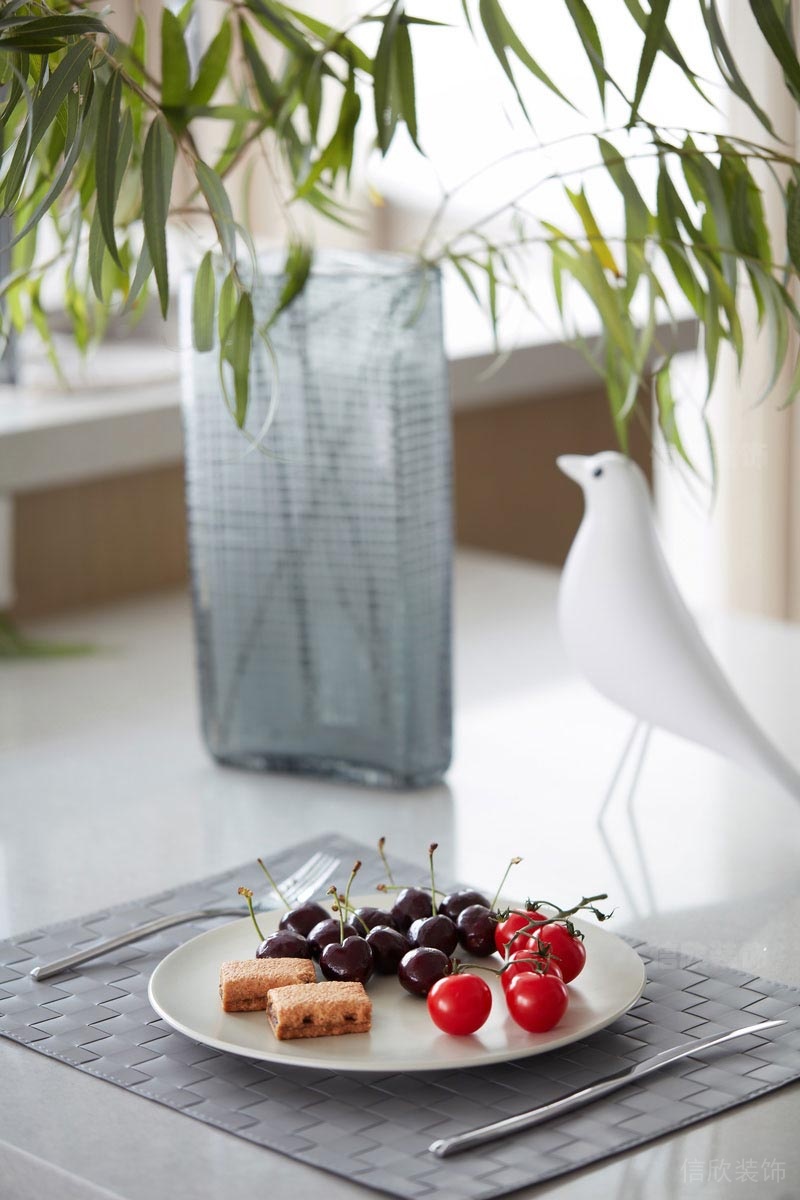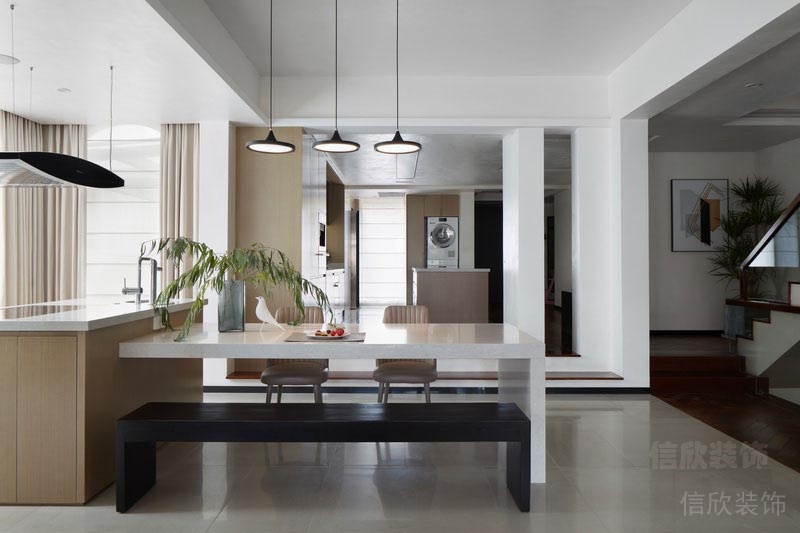 白色天然人造石餐桌,帶洗手盆的配置,實用方便,功能性強。