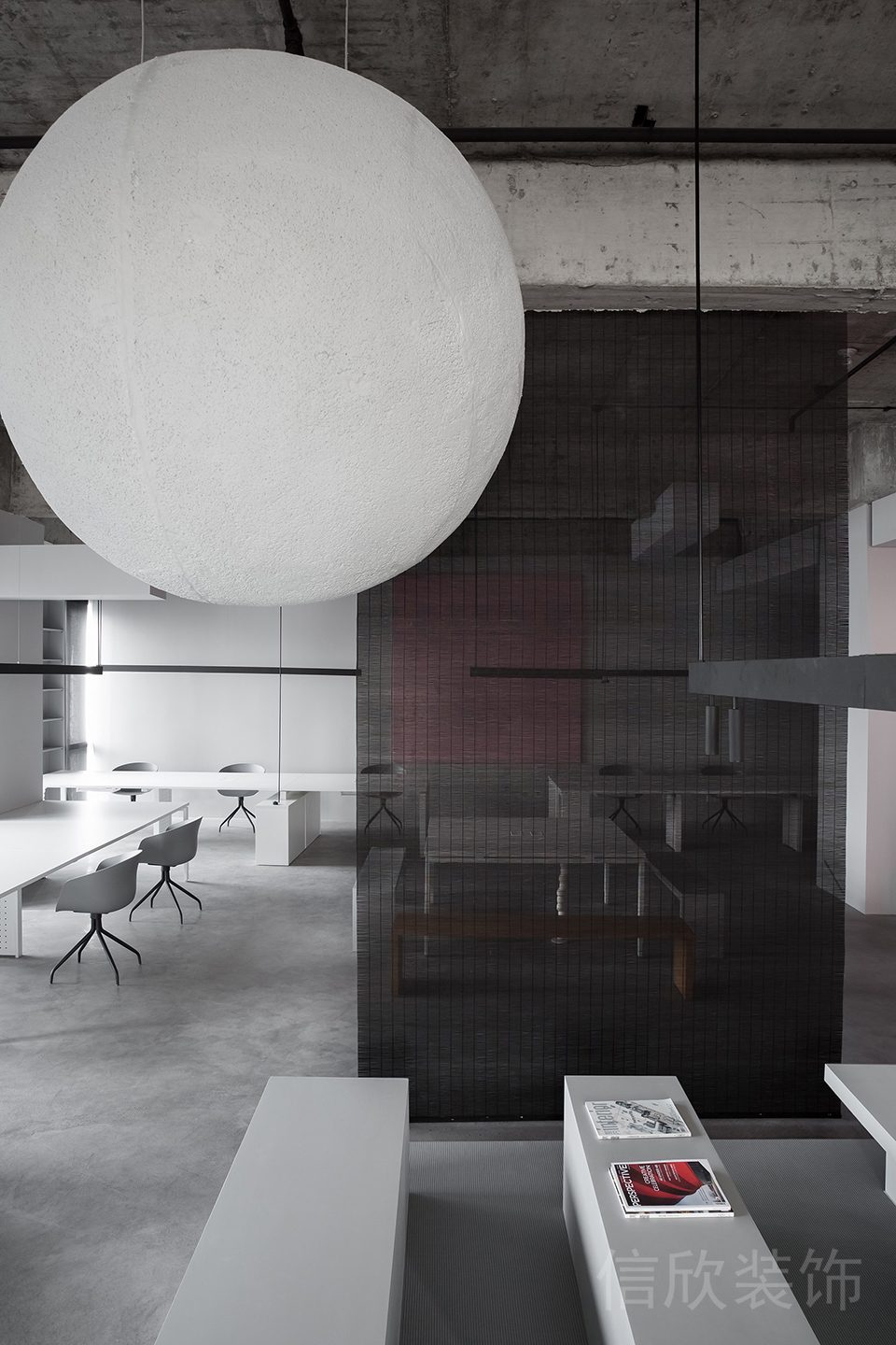 空間北部則是簡潔的辦公區和會客茶室,功能化的設備,隱藏繁瑣的線條,設備掛件,讓整潔的辦公環境給人清晰的邏輯和輕松的氛圍。部分的暖色配置,削減黑白的冷硬,提點人內心的溫度。空間中的每一樣器物都來自于設計者的精心挑選,設計的美體現在物的形態與功能之中,生活中的器物,傳遞著人對生活的熱愛,所以它們歸屬于這個空間,又不僅僅只屬于這個空間;他們在歸屬于生活,又不僅僅只用于生活……站在藝術的角度,器物不只是器物,裝修設計也不只是設計。
