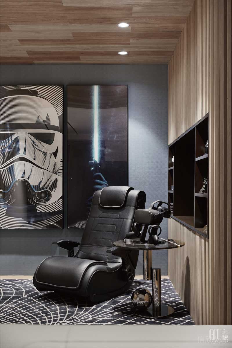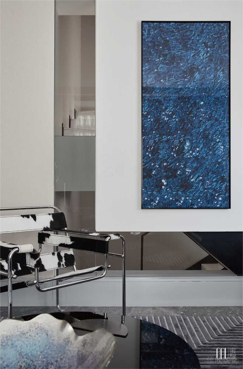 掛畫、地毯、沙發、均以延續性的線性提煉、創意性而簡約的視覺造型、純粹的現代主義美學及精尚的質感,是金秋設計一貫的設計語言。幾何重塑的形態,在空間中演繹著歲月風化的痕跡,賦予未來生活全新的視角。