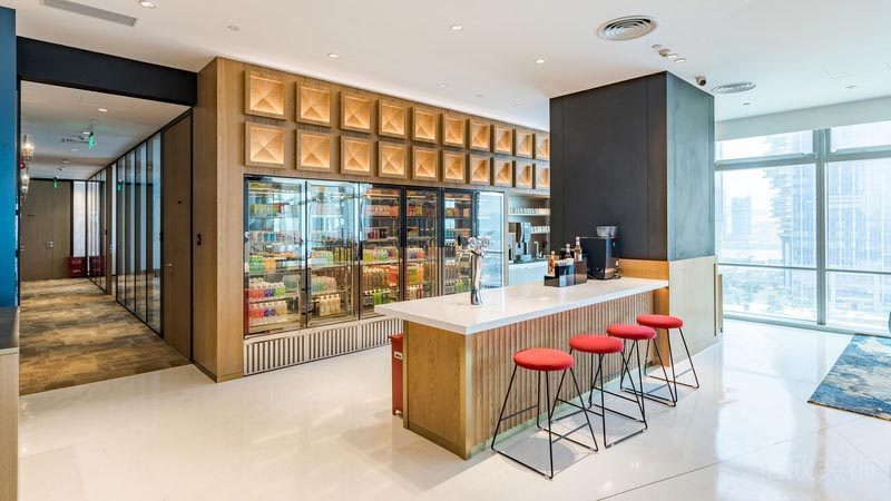 本案位于深圳市南山區是一所田園風的辦公室裝修設計案例,?室內大量的采用綠植裝飾,起到調節視力的作用,它可以減少人們因長時間辦公而出現的眼睛疲勞情況,讓人們輕松辦公。休憩區地面采用木地板進行裝修、辦公區鋪上地毯,其原因在于它們的防滑性相對較高,有助于較少摔倒的風險。