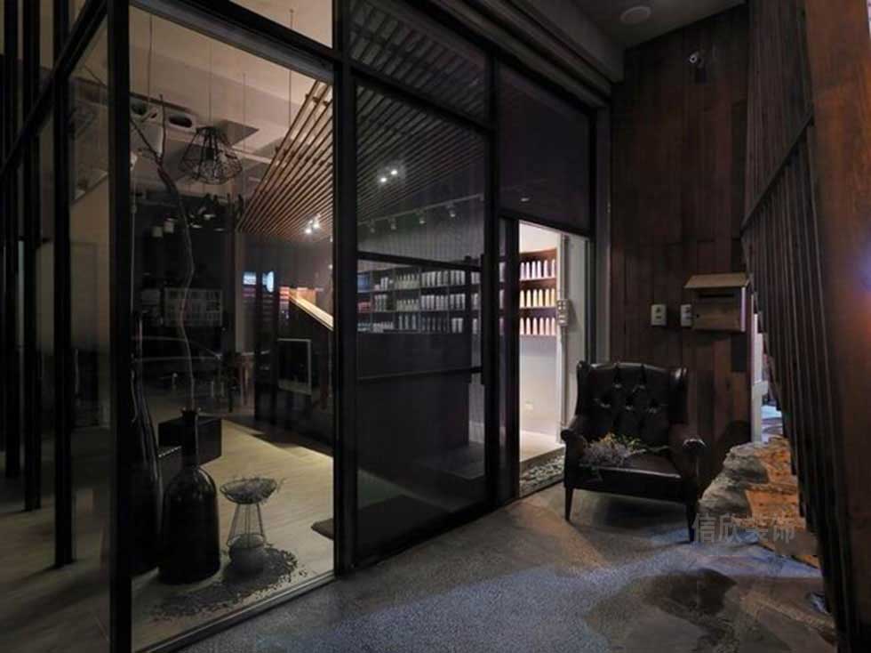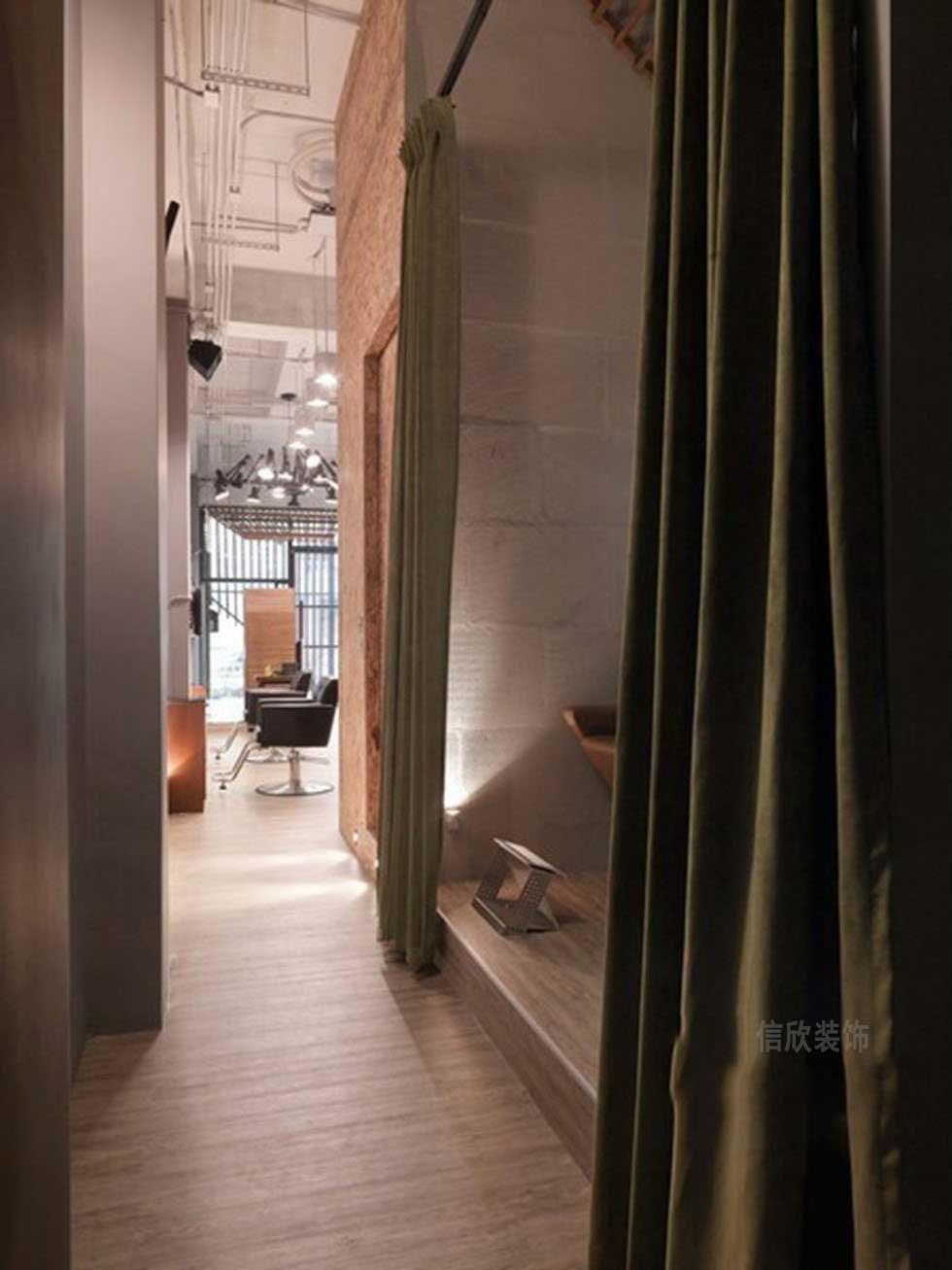 洗頭間的設(shè)計,刻意的隱藏和大廳做了一個分隔,功能性的使用上更協(xié)調(diào)和規(guī)范,同時用文化石和原木地面,營造出一個沖滿了北歐風的溫馨小隔間。