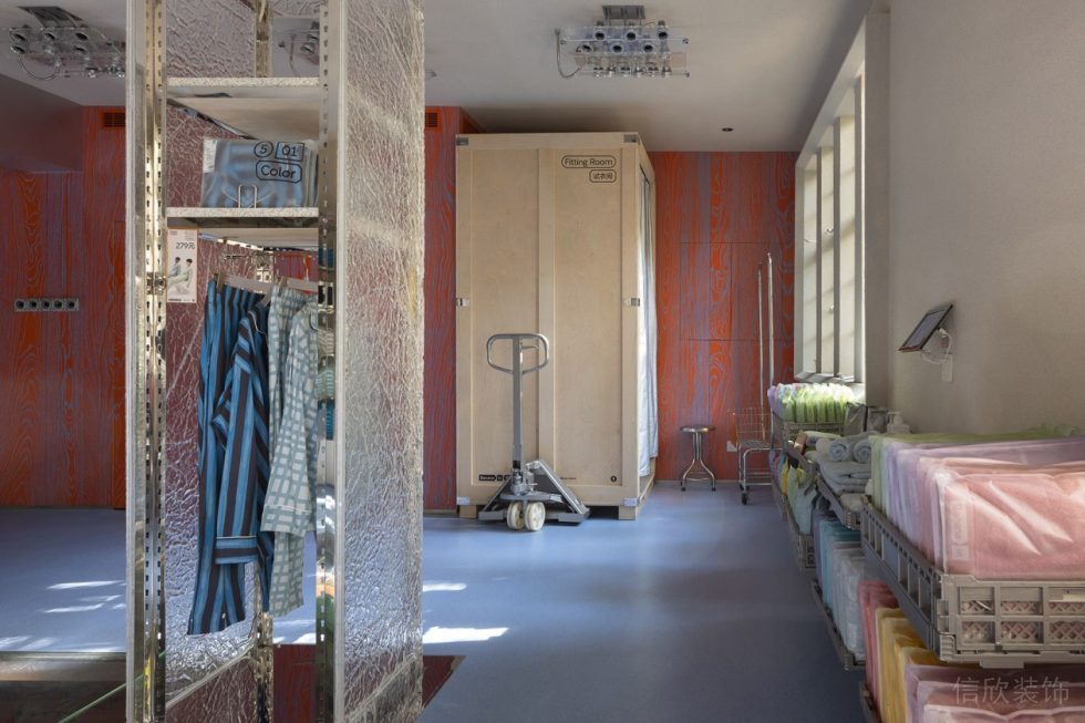 現代風服裝店裝修大廳,嵌入式的小展架,設計獨特,省錢環保。