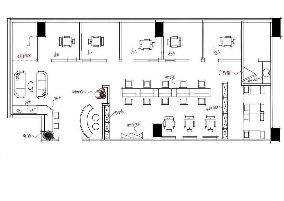 ??初稿永遠(yuǎn)是初稿。甲方永遠(yuǎn)都不安于現(xiàn)狀,尤其是美發(fā)的設(shè)計(jì)師們。功能完善的同時(shí)要滿足視覺感官 要滿足空間感官??要滿足……..(丟~)、