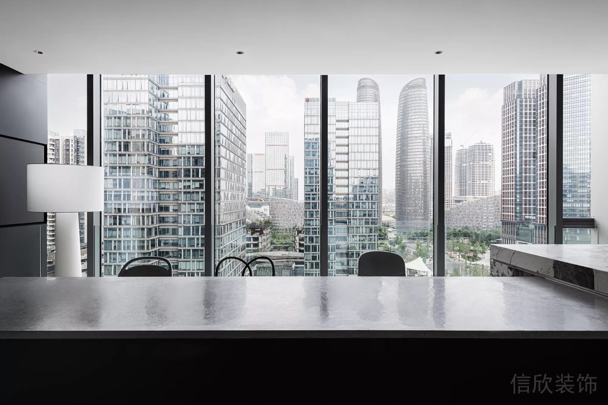 會客接待室黑白灰的裝修色彩奠定了工業主義現代風大方沉穩的空間氛圍。