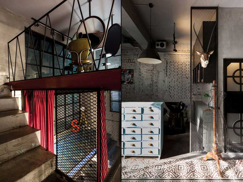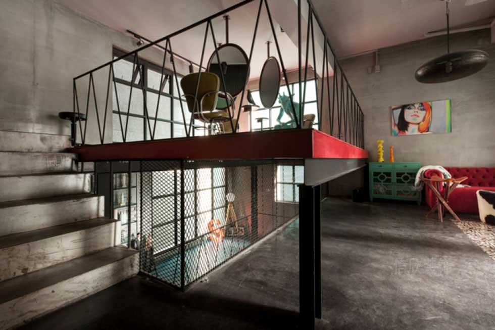 鐵藝的欄桿,粗糙的地面,吊在頂上的鐵藝鏡子,把所有的工業(yè)材料進(jìn)行了改造和升級(jí)最后加以合理利用,為的就是讓一切看起來更隨性和自由。