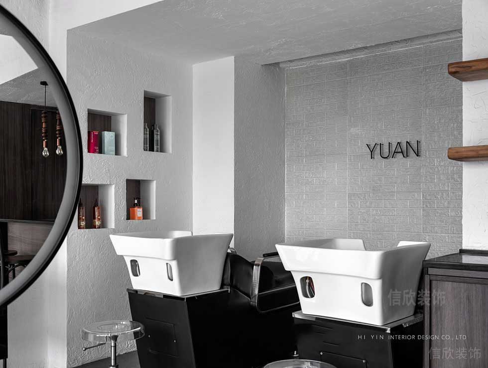 小眾化和精致的生活方式,不需要過大的空間,主打的是私密性和稀缺感,和大廳不做空間的分隔,洗頭區做了平臺墊高方便排水,通過色彩搭配的手法,做出典雅優質的感覺。