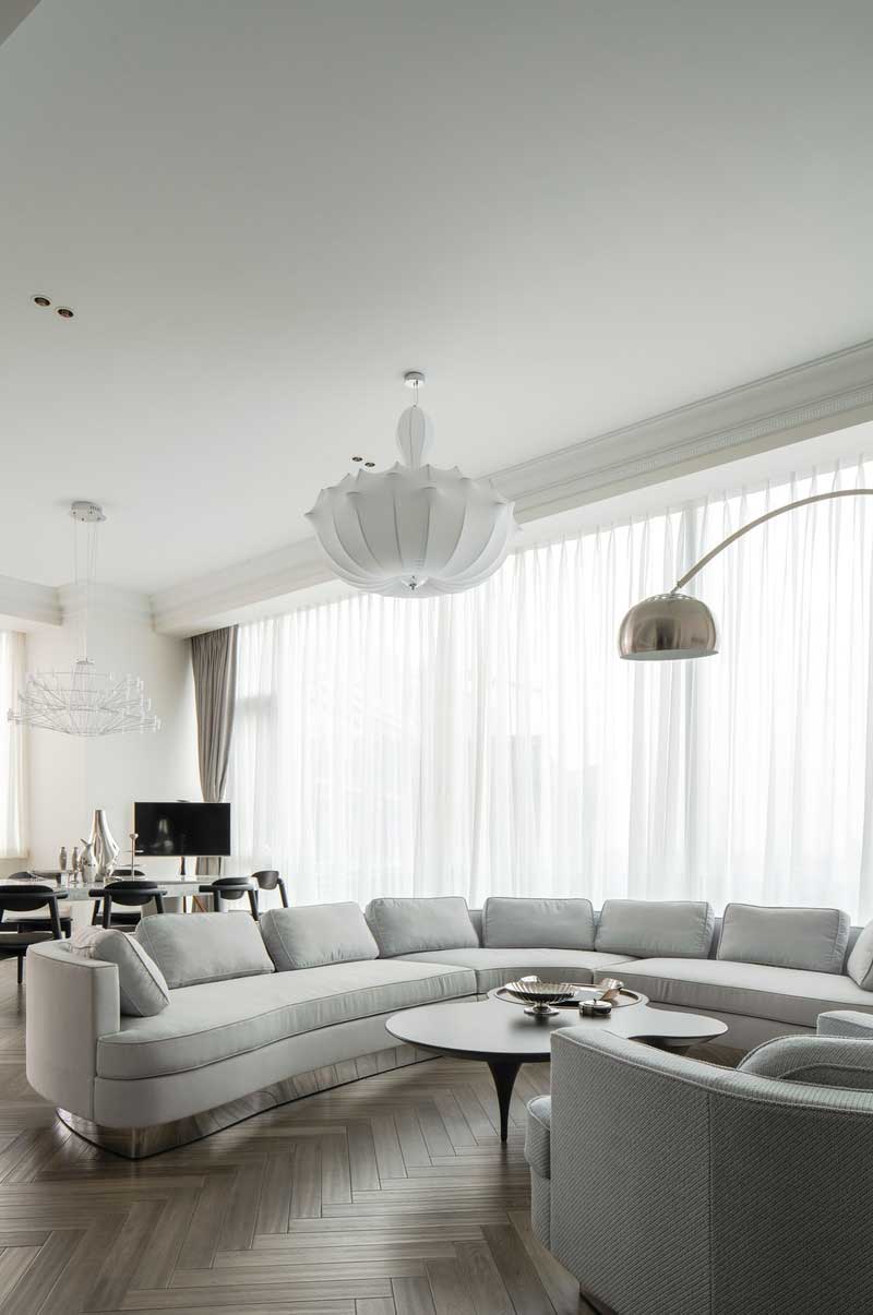 挑高的客廳空間不僅滿足會客需求與私人享受的同時盡顯屋主的溫柔與優雅