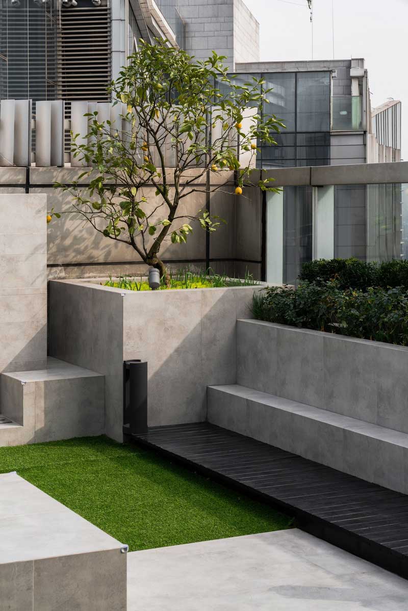 第三層是家庭的私人空間,開闊的天窗,加上美麗的空中花園