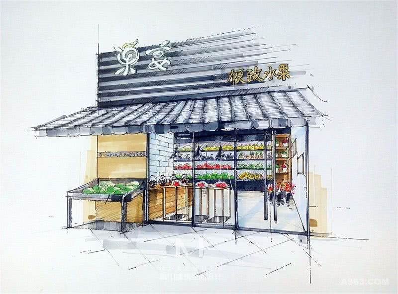 設(shè)計理念:本案是一所北歐風(fēng)格的水果店裝修設(shè)計案例,歐風(fēng)格與裝飾藝術(shù)風(fēng)格、流線型風(fēng)格等追求時髦和商業(yè)價值的形式主義不同,北歐風(fēng)格簡潔實用,體現(xiàn)對傳統(tǒng)的尊重,對自然材料的欣賞,對形式和裝飾的克制,以及力求在形式和功能的統(tǒng)一。在建筑室內(nèi)設(shè)計方面,就是室內(nèi)的頂、墻、地三個面,完全不用紋樣和圖案裝飾,只用線條、色塊來區(qū)分點綴。