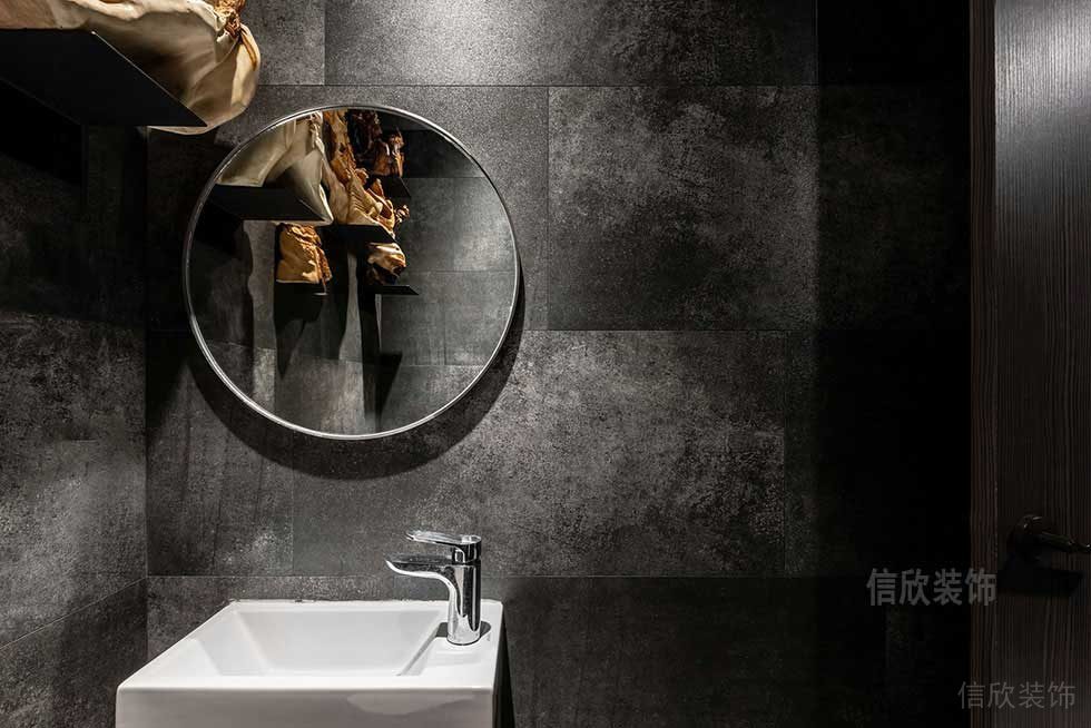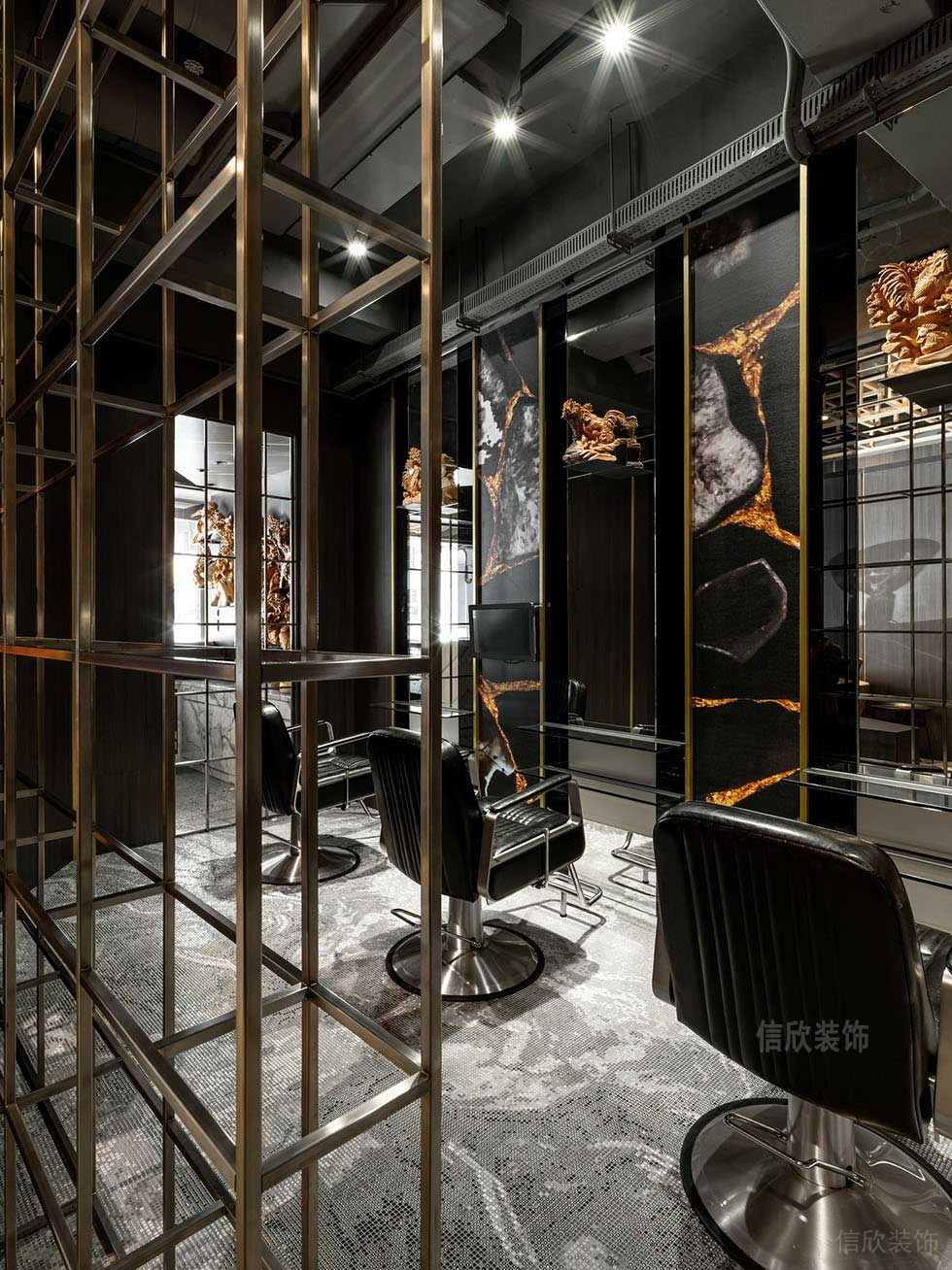 造型區的設計,落地式的金屬包邊鏡面,在抽象畫風的組合下,非常有后現代畫風的完美,潮流時尚充滿了快節奏激情的生活方式和暗黑系風格的結合,始終走在時尚的前沿。