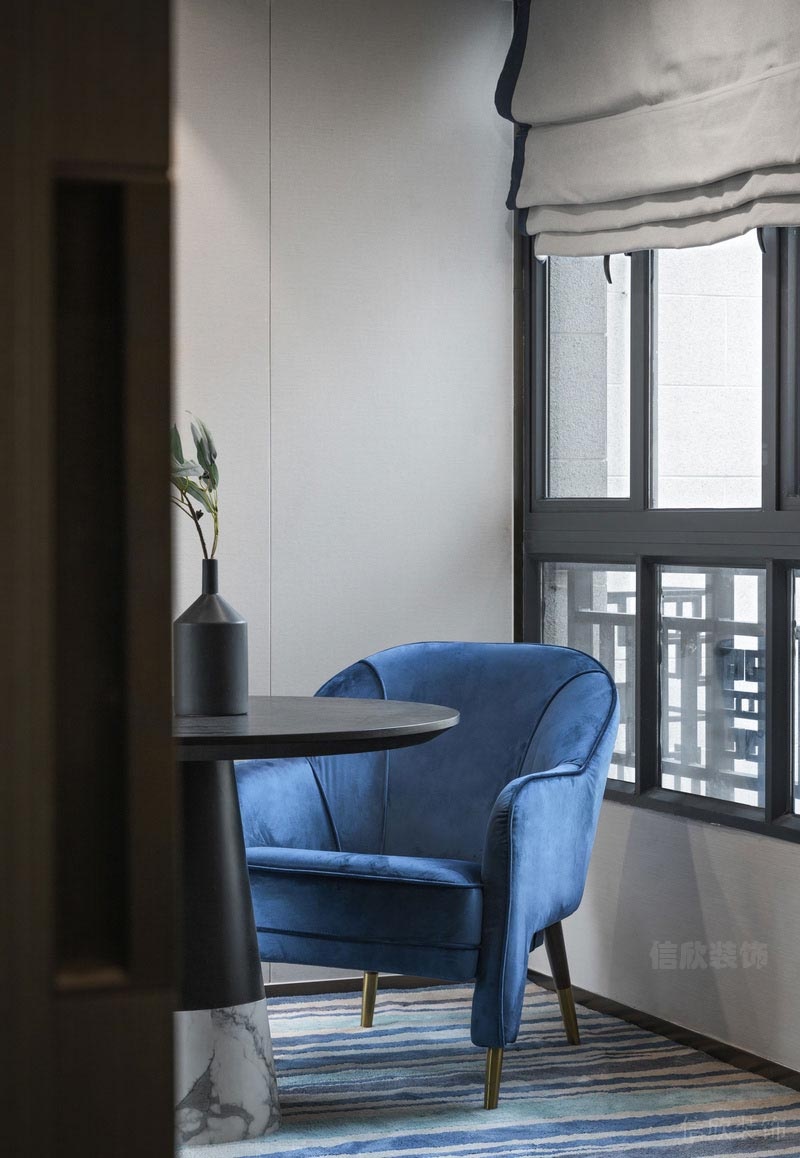 黑白的茶幾,貴族的湛藍的軟硬,抽象畫的線條結構,在視覺上舍棄張揚,通過對線條與色塊的巧妙應用,營造出輕松的空間氛圍,傳遞“輕奢華、新時尚”的生活理念。