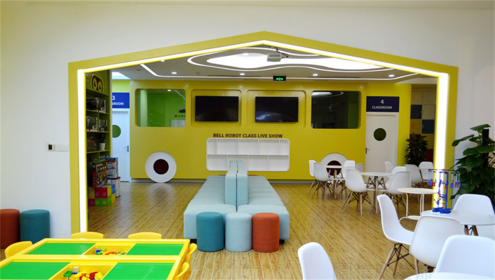 培訓班機構教室裝修設計 ? 少兒興趣培訓教室裝修 ? 深圳市寶安區松崗貝爾機器人兒童學院培訓機構裝修設計