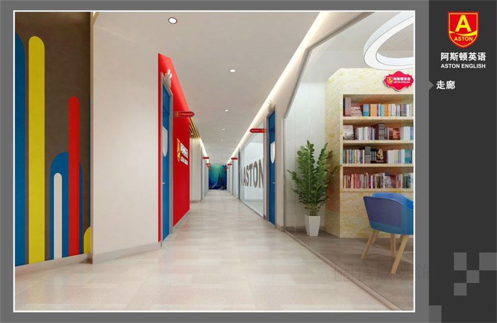 深圳市寶安區西鄉阿斯頓英語全國培訓學校開發區域深入開闊的過道,給人的感覺延伸性好,一目了然的把所有區域盡收眼底,企業文化墻的設計,增加了品牌的效應和對學校文化的認可度。