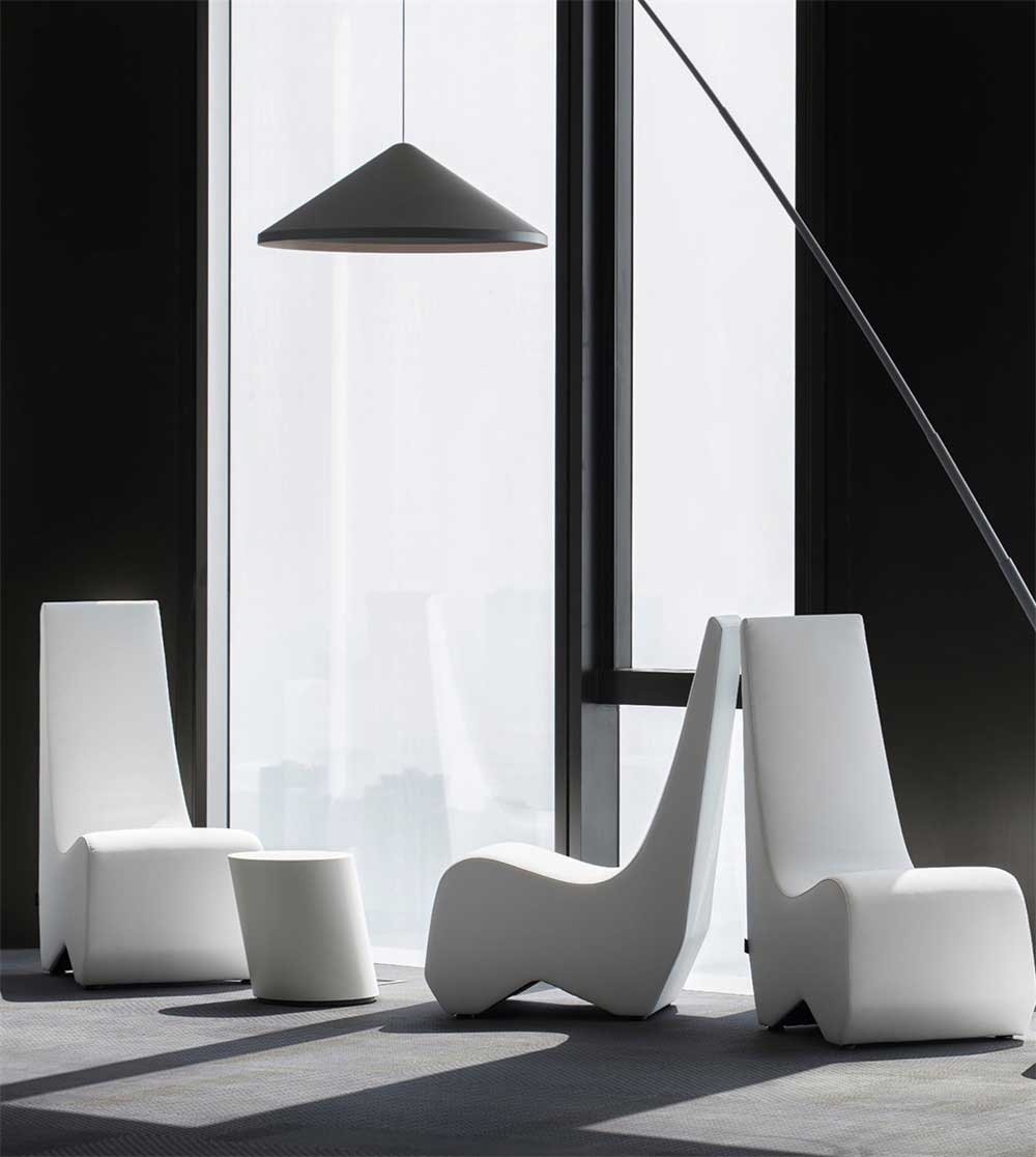 立體圖形的幾何沙發,手工藝的茶幾,在窗邊欣賞著風景,讓人心情愉悅。