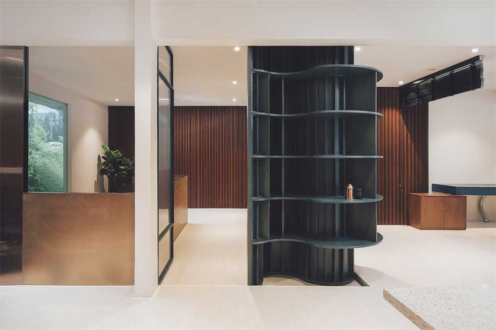 開放式的辦公空間,天然大理石和金屬組成的辦公桌,看似隨意的搭配,卻能把各種材料的質(zhì)感,和手工藝的魅力發(fā)揮的淋漓盡致。