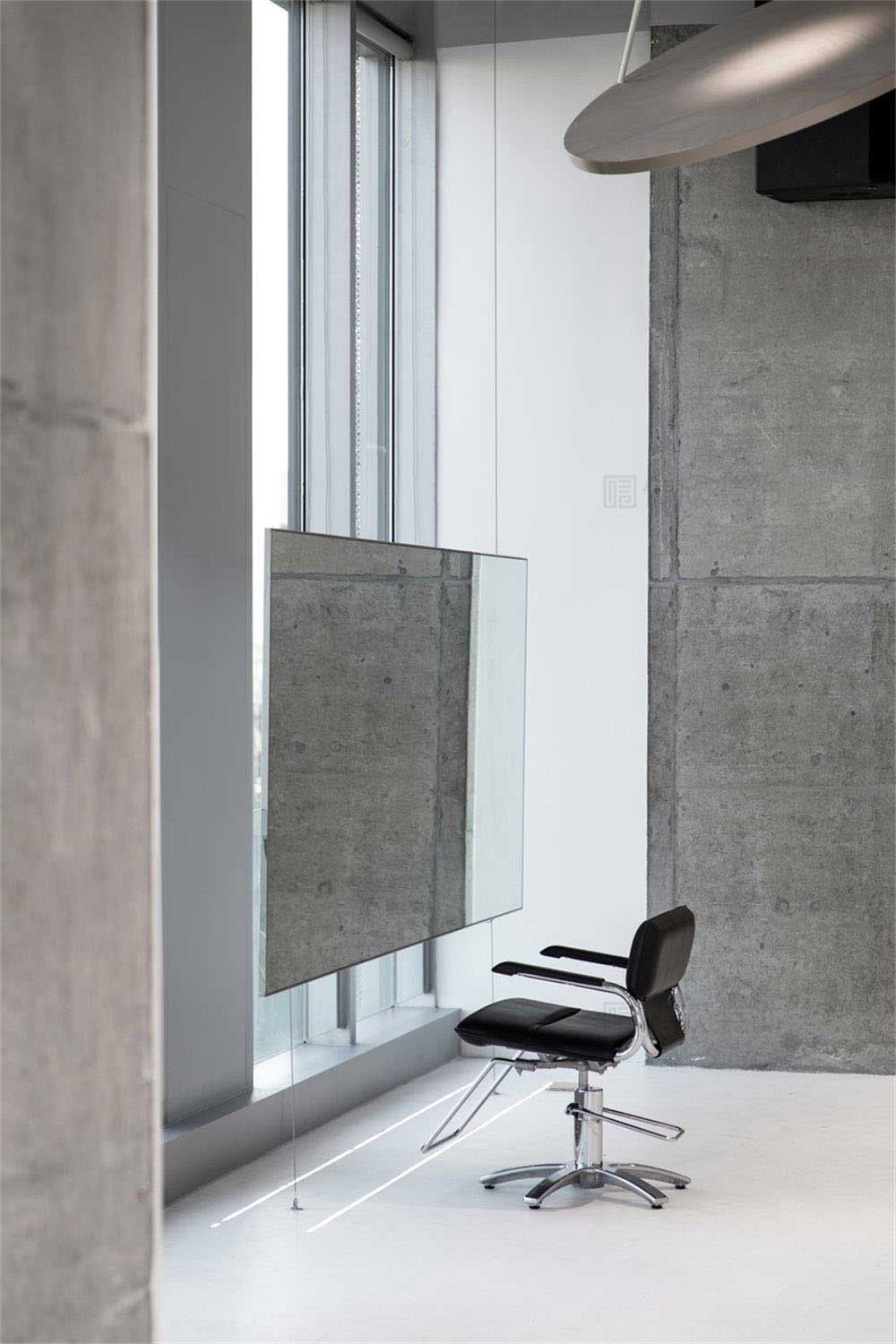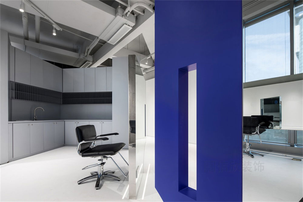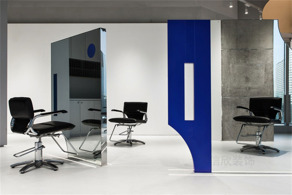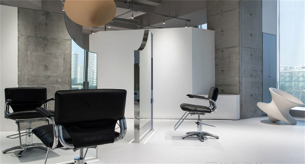 剪發(fā)區(qū)在白色地面,灰色頂面的應(yīng)用看上去素雅簡(jiǎn)約,雙面式立體圖形的全身鏡,猶如一個(gè)個(gè)美麗的藝術(shù)品,填補(bǔ)了整個(gè)場(chǎng)景的空缺,有點(diǎn)睛之筆的妙處。