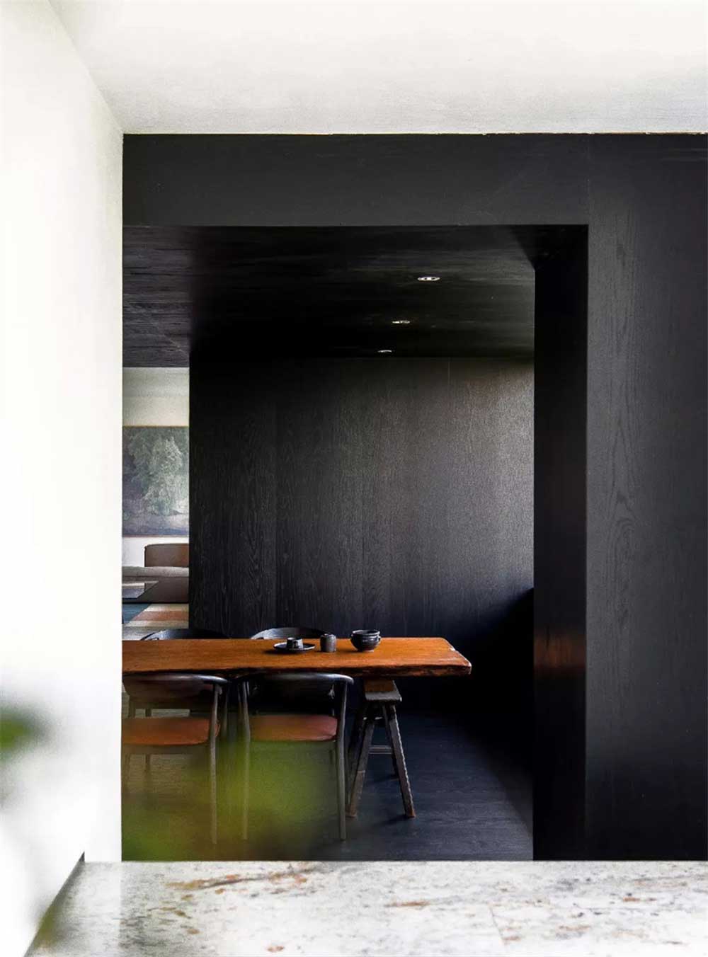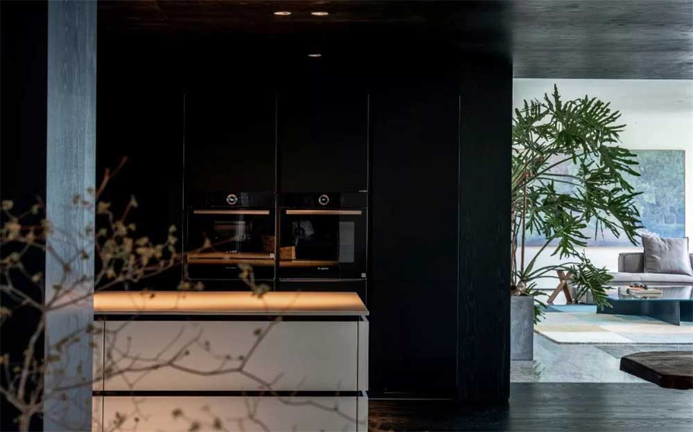 黑色和白色搭配的吧臺區(qū),經(jīng)典的色彩搭配,和整體設(shè)計風格的色彩更和諧統(tǒng)一。