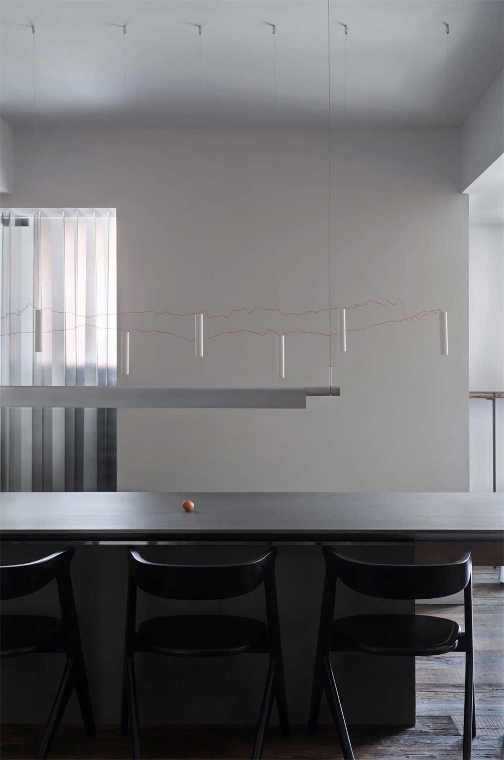 長條形的吧臺桌,黑色的實木椅子,既能做洽談區,也是工作之余休閑和洽談的好時光。