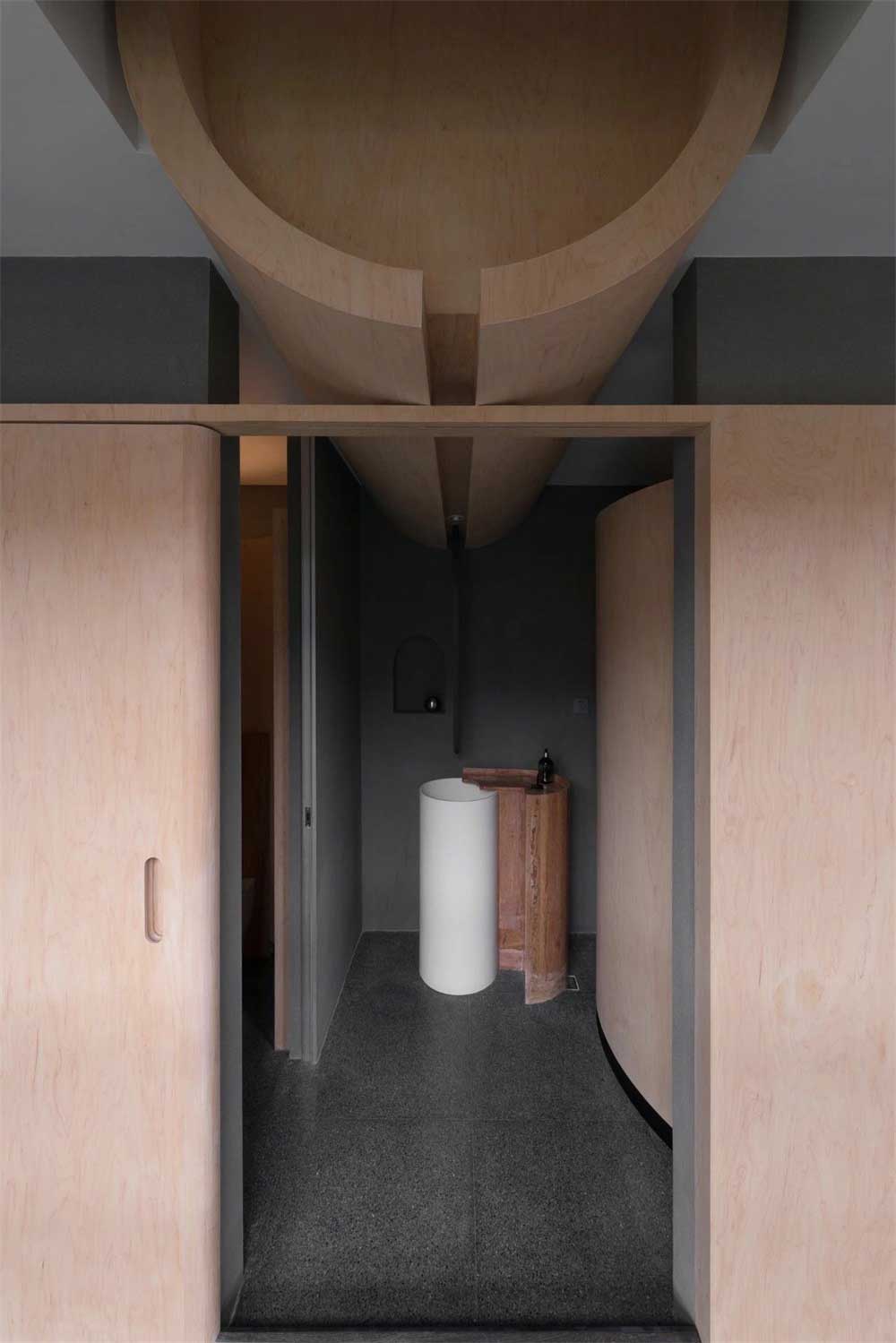 整體原木風打造,壁掛式的馬桶設計,在燈光的照射下,去除了傳統衛生間的冰冷,更有一種溫暖私密的情懷。