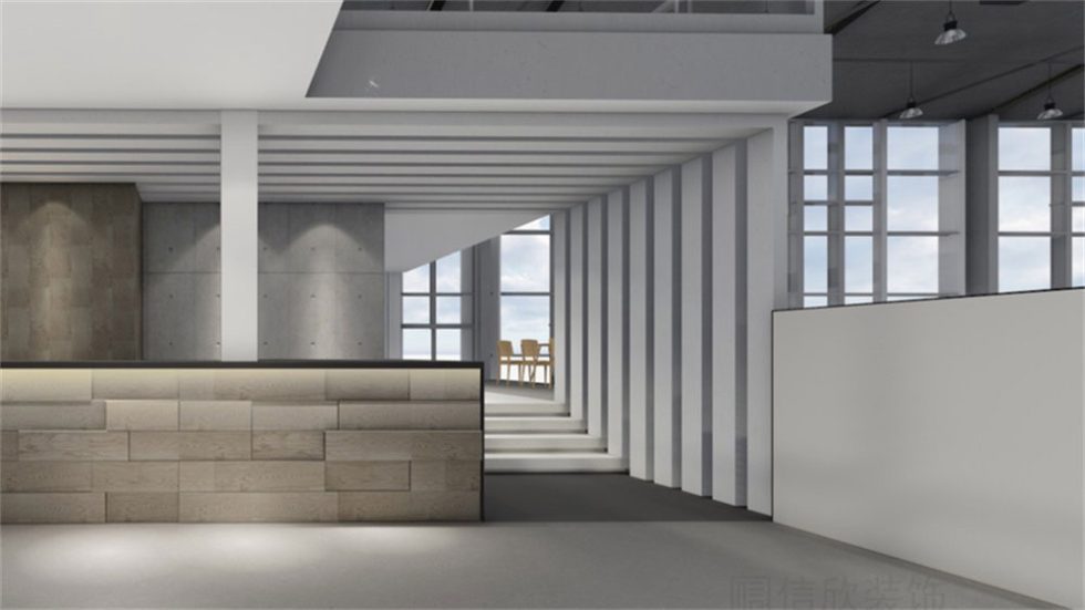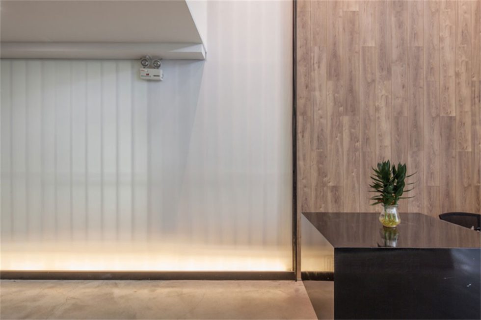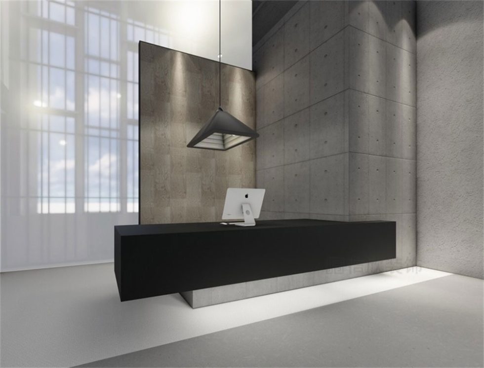 前臺的設計,原始的水泥板工業感的狂野,原木飾面板和黑色人造石,提升了檔次,把古典和現實的情懷,做了一個完美的融合。