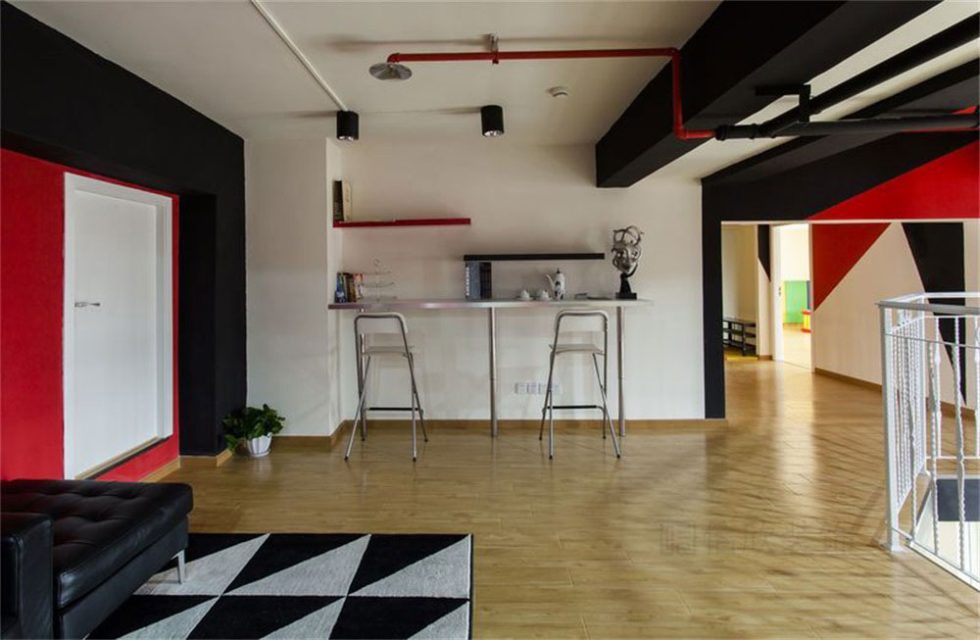 紅色的激情,配上黑色的沙發(fā)和黑白相間的地毯,冷色調(diào)和暖色調(diào)的碰撞,時(shí)尚大氣,有種濃厚的藝術(shù)氣氛。