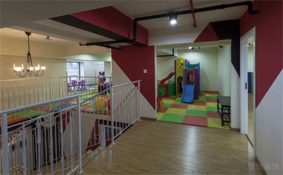 暖黃為主題的顏色,搭配孩子們喜歡的如彩虹般閃耀的七色護(hù)墻板,甲殼蟲玩偶等元素,充滿童趣和歡聲笑語的童年感覺。