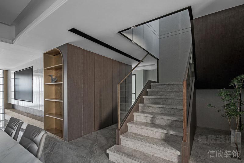 深圳市羅湖區田貝德弘天下華府樓梯 現代玻璃藝術樓梯,簡潔實用,植物背景清涼養眼,摩登時尚。
