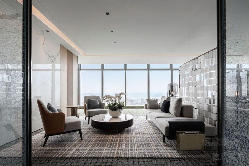本案位于深圳市是一所現(xiàn)代輕奢風(fēng)的辦公室裝修設(shè)計案例,輕奢風(fēng)辦公室裝修設(shè)計時尚線條匯聚您的心靈,在色系的運用上,大部的色調(diào)以淺色作為主色調(diào),稍微用亮色進行點綴。從視覺的角度上來說,淺色與深色相比,是一種較為舒適、柔和的色調(diào),再加上少許的亮色點綴,會使整個空間既有和諧統(tǒng)一的感覺,又突出了視覺層次感,給空間增添許多生氣和溫度。輕奢風(fēng)辦公室裝修設(shè)計時尚線條匯聚您的心靈,色彩是定位風(fēng)格的重要因素,想要打造出輕奢的感覺,必然要經(jīng)過巧妙的色彩搭配,才能顯現(xiàn)出豐富的魅力。 在色彩選擇上,輕奢風(fēng)格一般會選用象牙白、奶咖色、碳灰或米杏色等,一些帶有高級質(zhì)感的中性色調(diào),通過巧妙混搭讓空間氣質(zhì)得以提升,盡顯現(xiàn)代時尚優(yōu)雅的風(fēng)范。