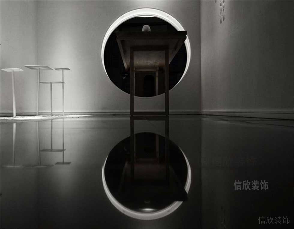 利用中式傳統文化中月門的設計理念,在墻面上通過開小孔的方式,管中窺豹的情趣,可以看到洽談區的全景,在素雅的外墻上,猶如映射出的一副風景畫。